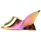 CHANEL シャネル ココマーク メタリックレザー ウェッジソール ヒール サンダル イエロー/ピンク レディース