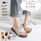 レディース ローヒール サンダル ぺたんこ フリル フラット スリッパ 夏 つっかけ 前開き オープントウ オープントゥ ローヒール ラバーソール ゴ