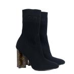 【美品】LOUIS VUITTON シルエット ライン アンクルブーツ モノグラム・フラワーヒール レディースブーツ ストレッチブーツ 1A855A ブラック 6005140m