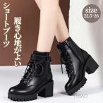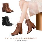 ショートブーツ レディース 編み上げブーツ アンクルブーツ レースアップ 美脚ブーツ 太めヒール 痛くない 歩きやすい 小さいサイズ 大きサイズ 秋冬