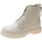 ショートブーツ レディース バックジッパー レースアップ 編み上げブーツ 白 黒 アンクルブーツ 厚底ブーツ ハイカット 軽量 歩きやすい