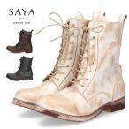 サヤ SAYA ラボキゴシ レースアップブーツ ショートブーツ アンクル丈 レディース クレープ 本革 51206 ラウンドトゥ ボロネーゼ製法 日本製 靴