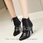 ハイヒール レディースシューズ ショートブーツ 大きいサイズ ピンヒール 9.5cm カジュアル 楽チン 無地 秋 冬 レースアップ 太ヒール 高め