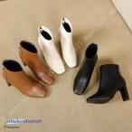 ブーツ レディース 合皮 ショートブーツ ブーティ シューズ ブラック 春 秋 冬 チャンキーヒール 7センチ バックジッパー 美脚 通勤 ブーティー 太ヒール