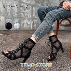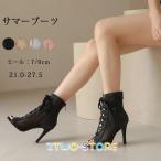 メッシュ ブーツサンダル 夏 サマーブーツ ピンヒール ハイヒール サンダル レディース オープントゥ 春ブーツ ヒールサンダル 大きいサイズ レース編み