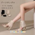 ブーツサンダル サマーブーツ レディース ショートブーツ ファッションサンダル レース 6cm パンプス オープントゥ チャンキーヒール 夏ブーツ サンダル
