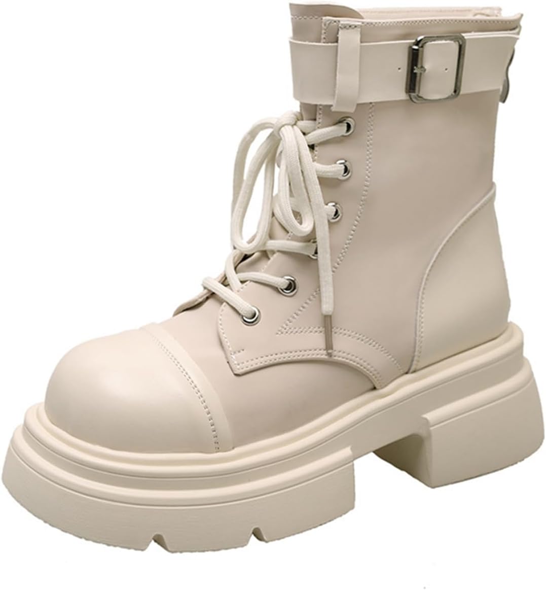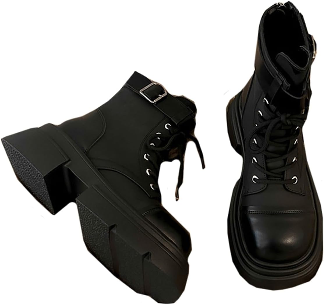 15cm 厚底 ショートブーツ ブーティ 太ヒール ベルト飾り レースアップ 編み上げブーツ カジュアル イベント 仮装 パーティー ハイヒール 厚底靴