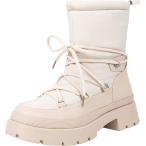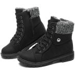 【並行輸入品】Inornever 冬用スノーブーツ レディース 防水シューズ フラットレースアップアンクルブーティー ローヒール ワークコンバッ