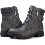 【並行輸入品】STQ レディース コンバットブーツ レースアップ アンクルブーティー グレー 6.5