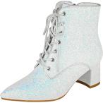 【並行輸入品】FIFSY レディース キラキラブロックヒール グリッター アンクルブーツ ポインテッドトゥ 調節可能 レースアップ スパンコール ブー