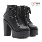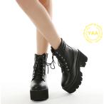 ブーツ 厚底ブーツ ミリタリーブーツ ワークブーツ アンクル丈 レースアップ 太ヒール ハイヒール ブラック レディース
