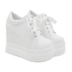 アンクルブーツ 厚底 レディース ショートブーツ スニーカーブーツ 12CMヒール レースアップ ハイヒール インヒール プラットフォーム