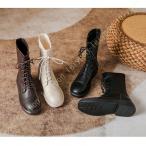 ブーツ レディース スノーブーツ アンクルブーツ 靴 ローヒール シューズ 紐 厚底 PU レースアップ 秋冬靴 本革 ウィングチップ ショートブーツ 通学 通勤