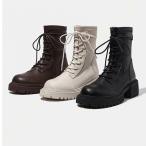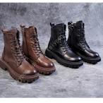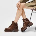 ショートブーツ レディース 厚底 アンクルブーツ レースアップ 皮革 足細 ウォーキング おしゃれ 疲れにくい 短靴 韓国 アメカジ 秋冬