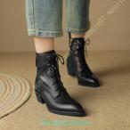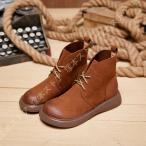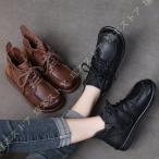 レディース アンクル丈 ショートブーツ 短靴 ミドル丈 レースアップ 本革ブーツ エスニック 足細 着脱簡単 秋冬 レトロ 歩きやすい