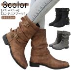 ミドルブーツ 秋冬 カジュアル レディース ローヒール くしゅくしゅ 歩きやすい 春 シャーリング ショートブーツ ジョッキー ブーツ 靴 ベルトデ