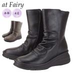 ミドルブーツ レディース at Fairy 9958 本革 レザー ブラック トープ 幅広 4E シャーリング サイドファスナー カジュアル 履きやすい ミセス 30代 40代 50代