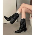 ウエスタンブーツ レディース ブーツ ウエスタン ミドル ショート 太めヒール 6cm チャンキーヒール ミドルブーツ 太ヒール 疲れない 美脚 ミドル丈