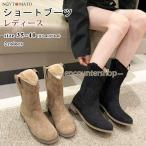 ショートブーツ レディース ローヒール ブーツ ミドル丈 スエード調 ウエスタンブーツ 黒 茶色 無地 バックジッパー 履きやすい 歩きやすい おしゃれ 美脚