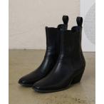 ブーツ 「撥水加工」リアルレザー トラックソールサイドゴアショートチェルシーブーツ レディース