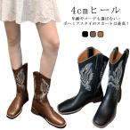 ウエスタンブーツ レディース ロングブーツ 防寒ブーツ 革ブーツ ショートブーツ ローヒール 太ヒール 4cm ヒール疲れない ウェスタン ブーツ 痛