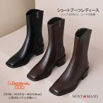 ブーツ レザー調 スクエアトゥ ウエスタン ショート ブーツ レディース