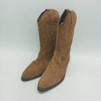 ■ tisimo ウエスタン カジュアル スエード アーモンドトゥ 太ヒール ショート ブーツ サイズ37 ブラウン レディース E
