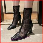 【特価】メッシュ ブーツサンダル 太ヒール レディース 夏サマーブーツ ハイヒール 8cm チャンキーヒール ショートブーツ 通気 美脚 ウエスタンブーツ