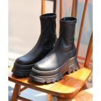 ブーツ 極盛り厚底トラックソールストレッチショートブーツ レディース