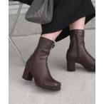 ブーツ スクエアトゥ厚底ストレッチショートブーツ レディース