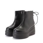 ブーツ レザー調ショート丈バックレースアップ厚底ブーツ レディース