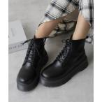 ブーツ 厚底レースアップショートブーツ レディース