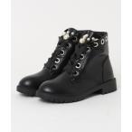 ブーツ ビジュー リボン レースアップ ショート ブーツ レディース