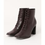 ブーツ チャンキーヒールレースアップショートブーツ レディース