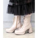 ブーツ アーモンドトゥレースアップ厚底ショートブーツ レディース