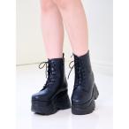 ブーツ Mafmof(マフモフ)10cmメガ厚底クラッシュソールレースアップショートブーツ レディース