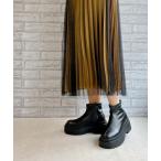 ブーツ 厚底 サイドファスナー ダブルソールショートブーツ レディース
