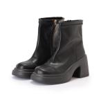 ブーツ レザー調バックファスナーチャンキーショートブーツ レディース