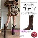 ブーツ スエード調厚底ロングウエスタンブーツ レディース