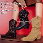 ショートブーツ レディース 太めヒール スエード調 くしゅくしゅ ブーツ ミドル丈 柔らかい ウエスタンブーツ ミドル丈 筒太め 履きやすい 歩きやすい おしゃれ