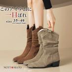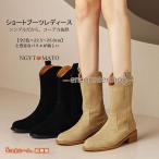 ウエスタンブーツ スエード調 ショートブーツ レディース 太めヒール ブーツ ミドル丈 ミドルブーツ 筒太め 黒 履きやすい 歩きやすい カジュアル おしゃれ 美脚