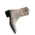ショートブーツ レディース ローヒール ポインテッドトゥ スエード調 2way ウエスタンブーツ くしゅくしゅ 筒太め ベルト 履きやすい 歩きやすい おしゃれ 茶色