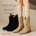 ショートブーツ レディース 太めヒール スエード調 ウエスタンブーツ ミドル丈 筒太め 履きやすい 歩きやすい おしゃれ 秋冬