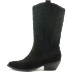 【並行輸入品】Soda CHOYA レディース ラウンドトゥ フェイクスエード スタックヒール ウエスタンアンクルブーツ ブラック 9