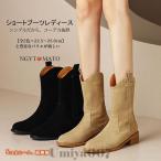 【送料無料】ブーツ レディース ショート丈 ウエスタン ショートブーツ シューズ スエード調 チャンキーヒール 太めヒール ローヒール おしゃれ 疲れない 美脚見せ シンプル 痛くない
