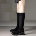 スエード ウエスタンブーツ ロングブーツ レディース ブーツ 膝下 ロング丈 スリム チャンキーヒール ジョッキーブーツ ラウンドトゥ 乗馬ブーツ 演出 日常