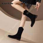 ウエスタンブーツ 焦がし加工 本革 レザー レディース ショートブーツ スエード ミドルヒール 秋冬 粗いかかと ポインテッドトゥ 防寒靴