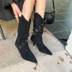 ニーハイブーツ ロングブーツ レディース ポインテッドトゥ スリム 歩きやすい ハイヒール スエード ウエスタンブーツ 美脚 脚長 太めヒール 痛くない