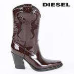 ★DIESEL ディーゼル レディース★牛革 本革 スエードミックス チャンキーヒール レザーウエスタンブーツ 靴【D-WESTERN】【日本サイズ22.5〜24.0】【ブラック】die-l-k-f4-k52 《メーカー希望小売価格66,000円》