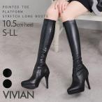 【1点10%/2点15%/3点20%OFFクーポン】25年秋冬再販 Vivian ブーツ レディース ポインテッドトゥ プラットフォーム ストレッチ ロングブーツ 10.5cmヒール 細ヒール ピンヒール ブラック 黒 スエード オフィス 通勤 痛くない V9911AW